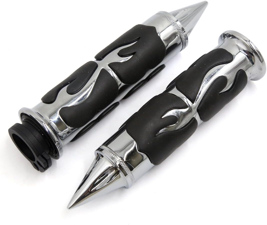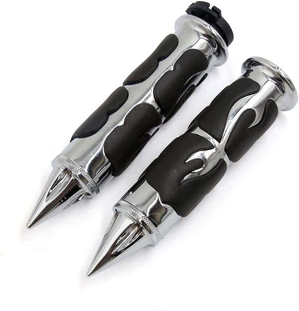 2pcs Spike Head Design Motorcycle 26mm Fit Hole Rubber Handlebar Handle Handle Non-slip surface, which prevents the handlebar from slipping and makes driving safer. The throttle will easily rotate the throttle. Spike Head Design, which can make your motorcycle more stylish. In the package can be installed or removed according to your need. It is a UInversal product, which can apply to most motorcycles. The inner hole size of handlebar handle is 26mm(1 inch) and it fits for Motorcycles whose installation hole measurement is 26mm. Package include: 2 x Motorcycle Handlebar Handle (Left & Right) Note: Please make sure this item fits for your motorcycle before placing orders.